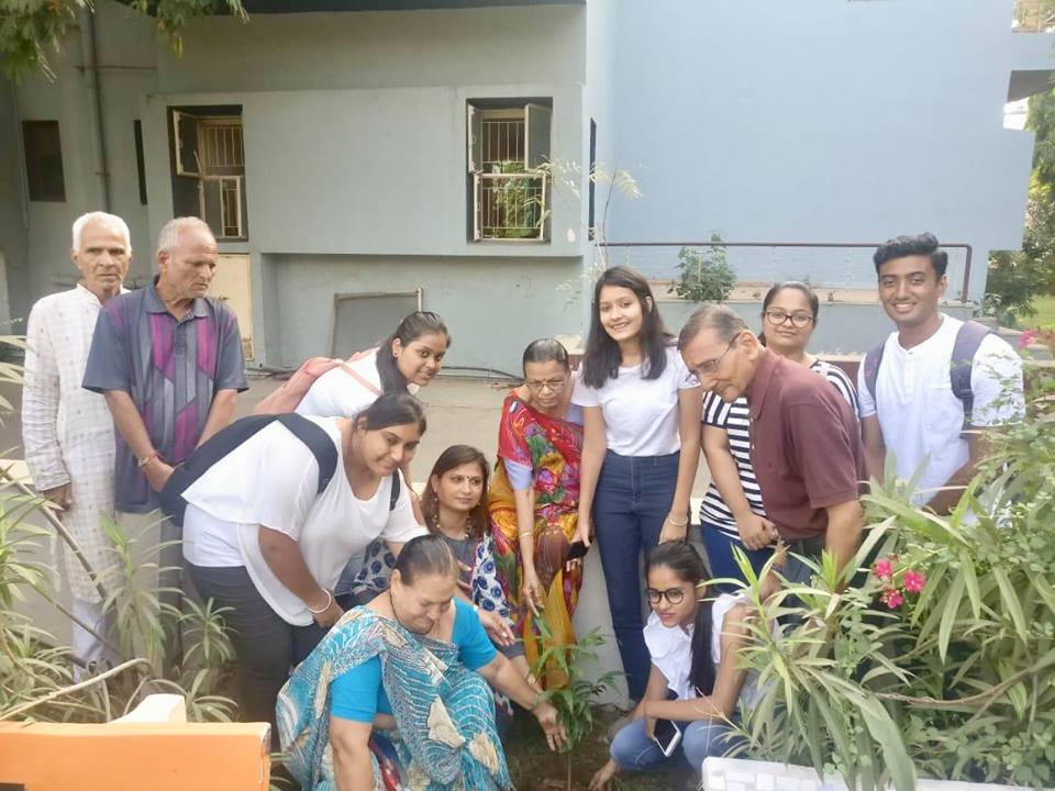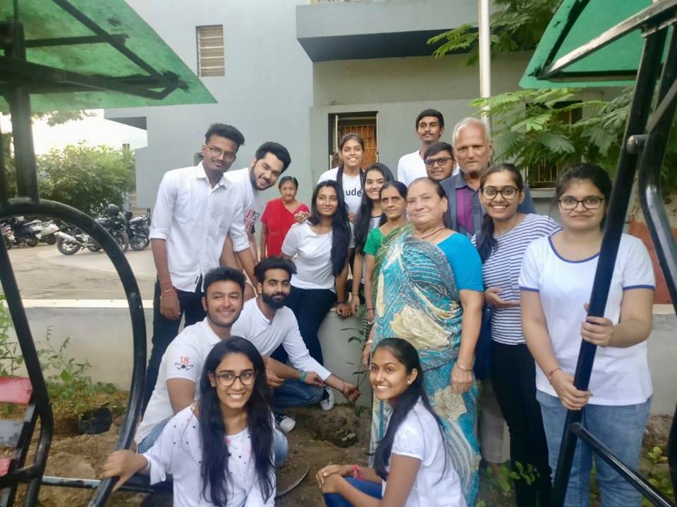 e. Sahara: Team Sahara collected 5400 pieces of clothes of various sizes and had distributed the same to various slum areas near Mansi cross roads, Ashram road, Paldi, etc. f. Goonj: Team Goonj chose to have the current generation gap filled with tender love and care. They chose to spend a day at an old age home. They visited Jeevan Sandhya old age home and got involved in the activity of tree plantation. Together students and old age residents planted more than 30 trees. The activity was followed by healthy yet light interaction with the residents to build the bond of belongingness and togetherness.